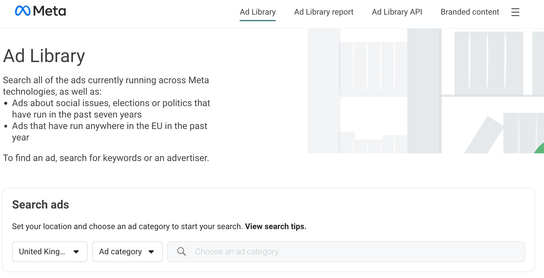 The Meta Ad Library lets you see all active and inactive ads any Page is running across Meta platforms, including Facebook, Instagram, Audience Network, Messenger, and Threads.