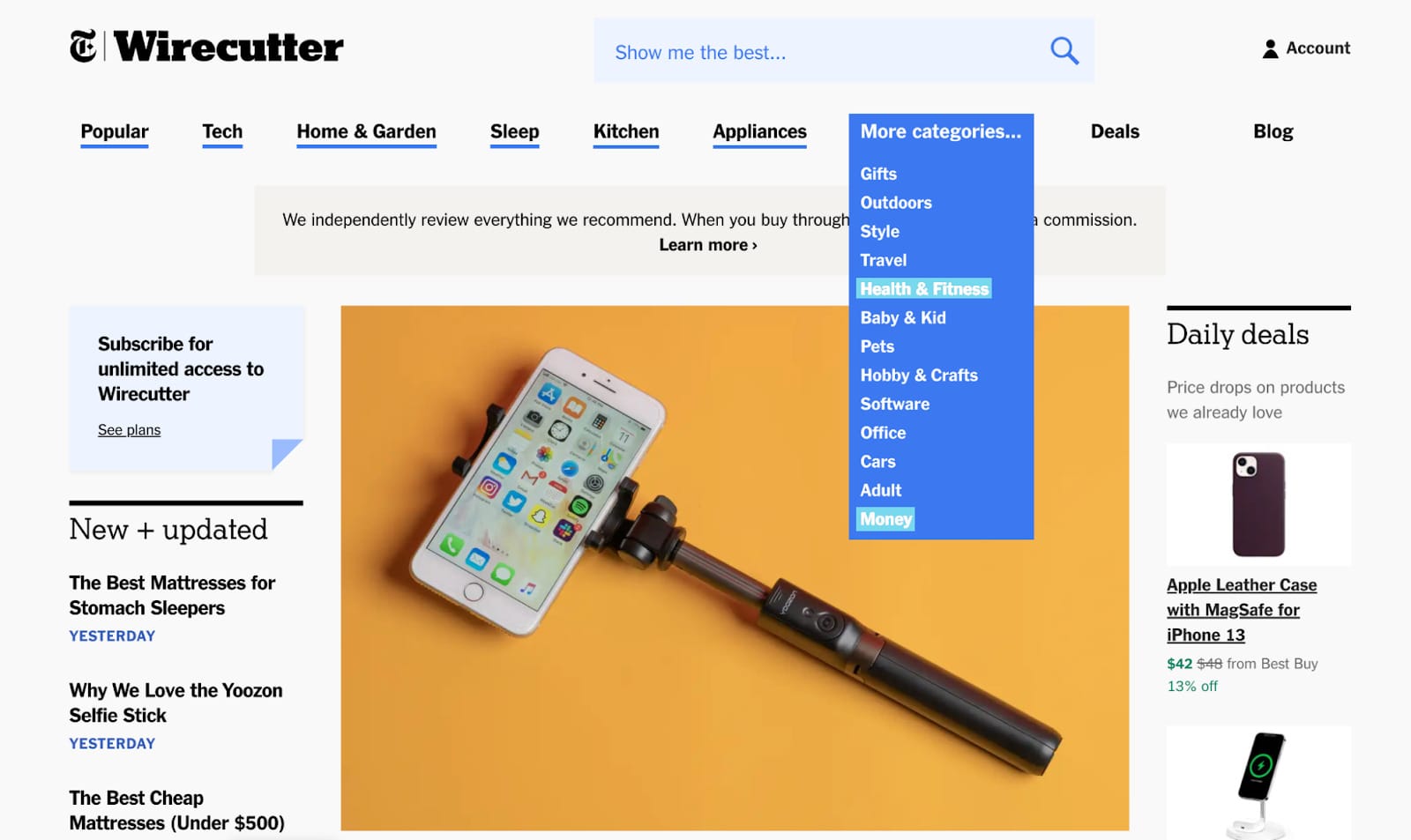 What I think Wirecutter does really well is its email marketing. Through that, the site shares all the new content and references relevant pieces that are older: