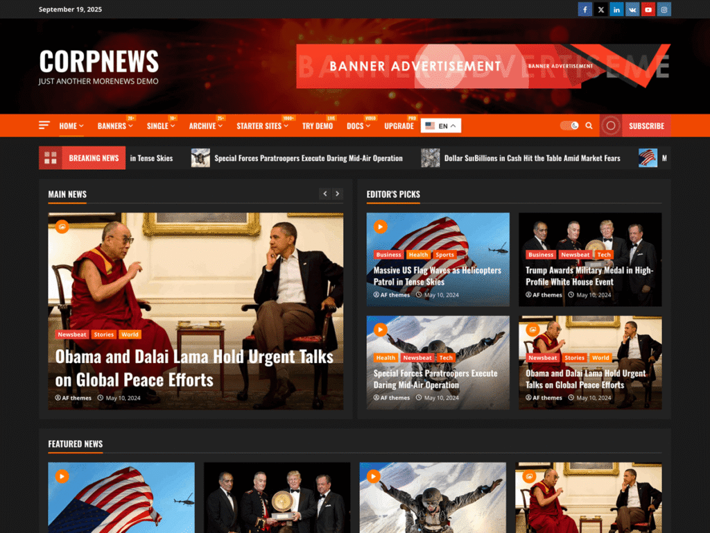 CorpNews is a professional, enterprise-style dark WordPress child theme built on MoreNews for online newspapers, editorial…