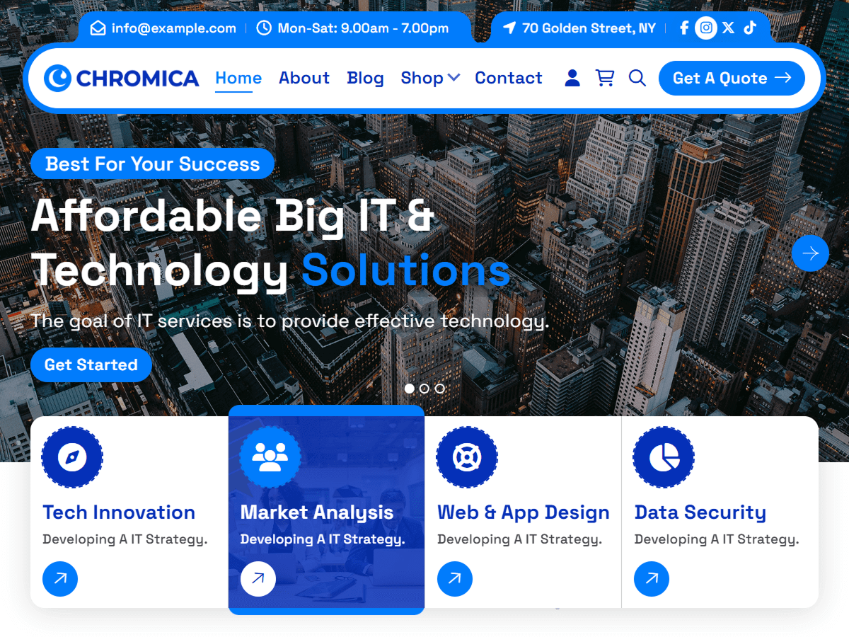 Chromica is lightweight, highly extendable and multi-purpose WordPress Theme. Chromica is perfect for Startup, IT Solutions, IT Business, Agencies, Marketing, Consulting and Services Company related to any business websites. Chromica based on in-depth research into IT Solutions, IT Services, IT Business, Consulting & Software, Digital Solution, Technical Engineering, Technology, and Services Company, to deliver all needed layouts and blocks. It will enable you to create almost any type of website with a beautiful & professional design. Chromica supports popular WordPress plugins such as Elementor, WPML, Polylang, Yoast SEO, WooCommerce, Contact Form 7, Jetpack, and much more.