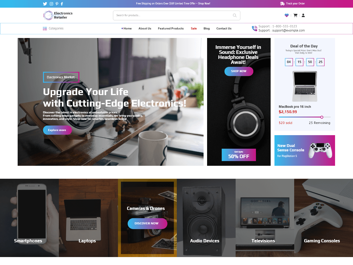 The Electronics Retailer WordPress Theme is a premium, fully responsive theme designed specifically for electronics retailers and e-commerce platforms. It’s perfect for businesses selling a wide range of electronics, from mobile gadgets and wearable technology to home entertainment systems and kitchen electronics. This theme offers a visually engaging layout that showcases electronics product categories like high-end electronics, gaming gadgets, and home appliances with ease. It features a modern design that aligns with consumer electronics trends, ensuring that your website stands out in the competitive online marketplace. The theme is packed with features that benefit retailers, including product display grids, product reviews, and integration with popular e-commerce tools like WooCommerce for seamless shopping experiences. It supports multiple payment options, delivery tracking, and easy integration with electronics retailer SEO strategies to improve search engine rankings. With dedicated spaces for showcasing electronics warranties, return policies, and customer service, your site can provide all the information your customers need to make informed buying decisions. The theme also includes advanced customization options, so you can tailor the design to fit your brand and create a unique, user-friendly shopping experience Whether youre a small electronics shop or a large, global retailer, this theme helps elevate your online presence and boosts sales with a clean, professional look. Demo: https://www.vwthemes.net/electronics-retailer-pro/