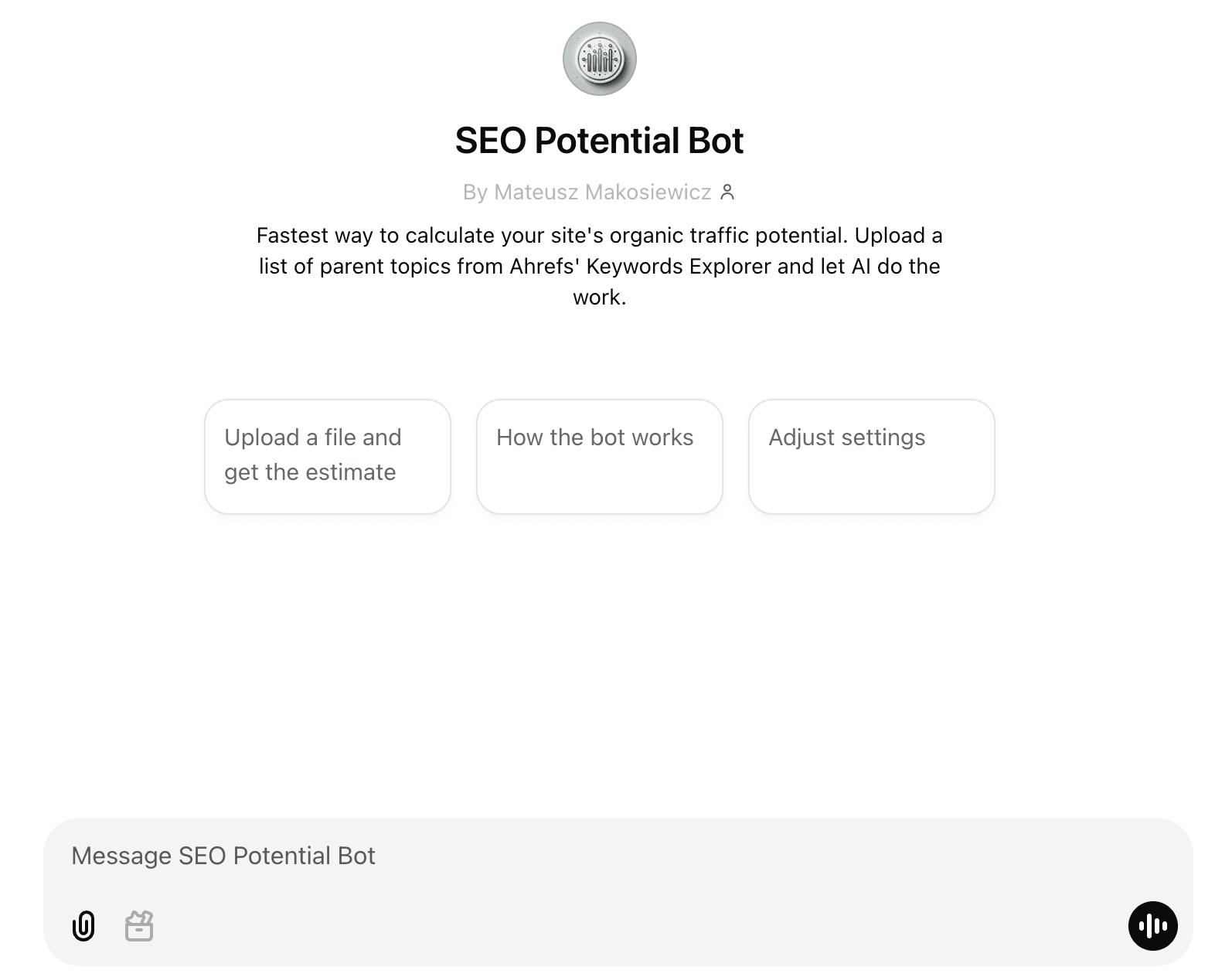 Calculating SEO potential can be complex and time-consuming. But this is where my free SEO Potential Bot comes in. This simple tool automates the process of analyzing keywords, modeling ranking scenarios, and, in effect, calculating your/your client’s SEO traffic potential.
