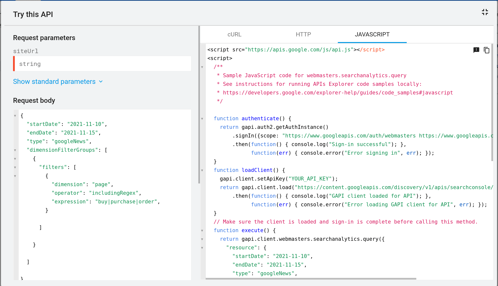 Check out the Search Analytics API documentation to learn more.