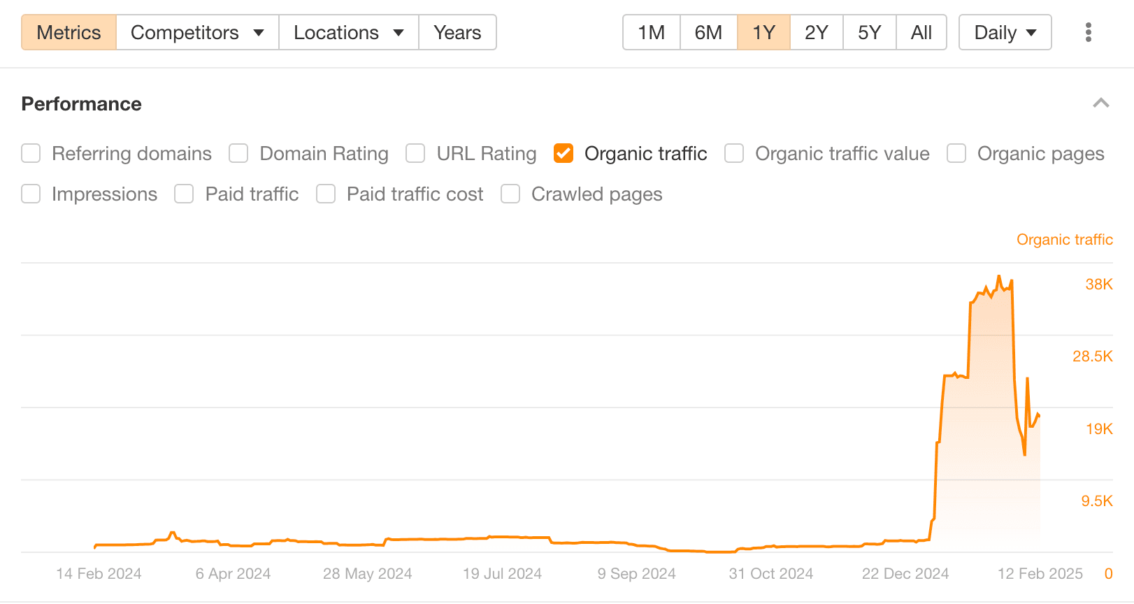 Here’s a quick look at the top 5 electric vehicle makers with the greatest growth in organic traffic last year (graphs come from Ahrefs’ Site Explorer).