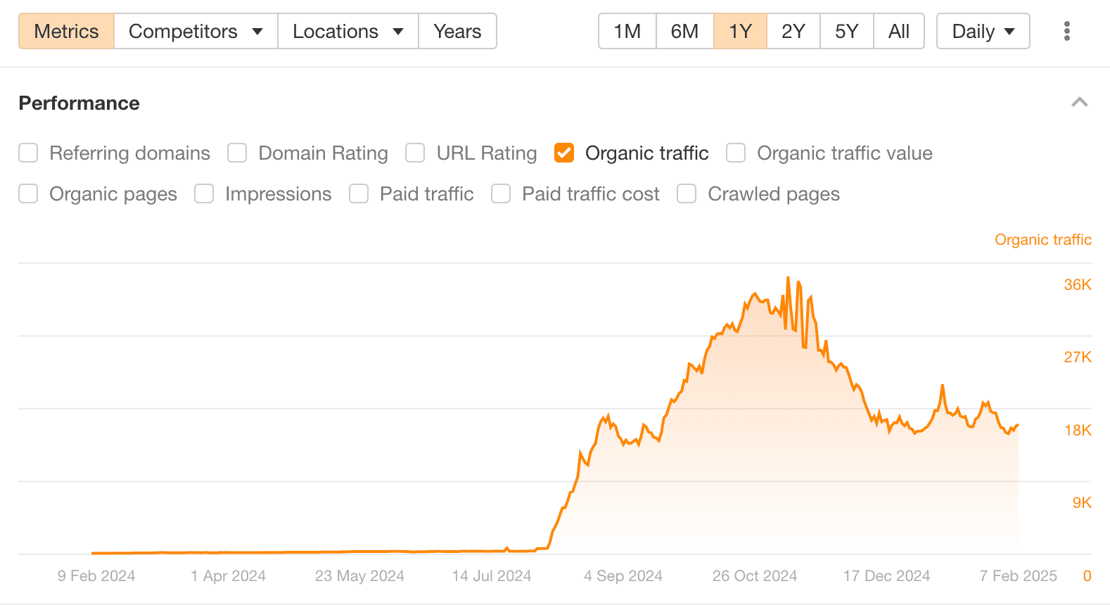 Organic traffic growth (12mo): 24,944%