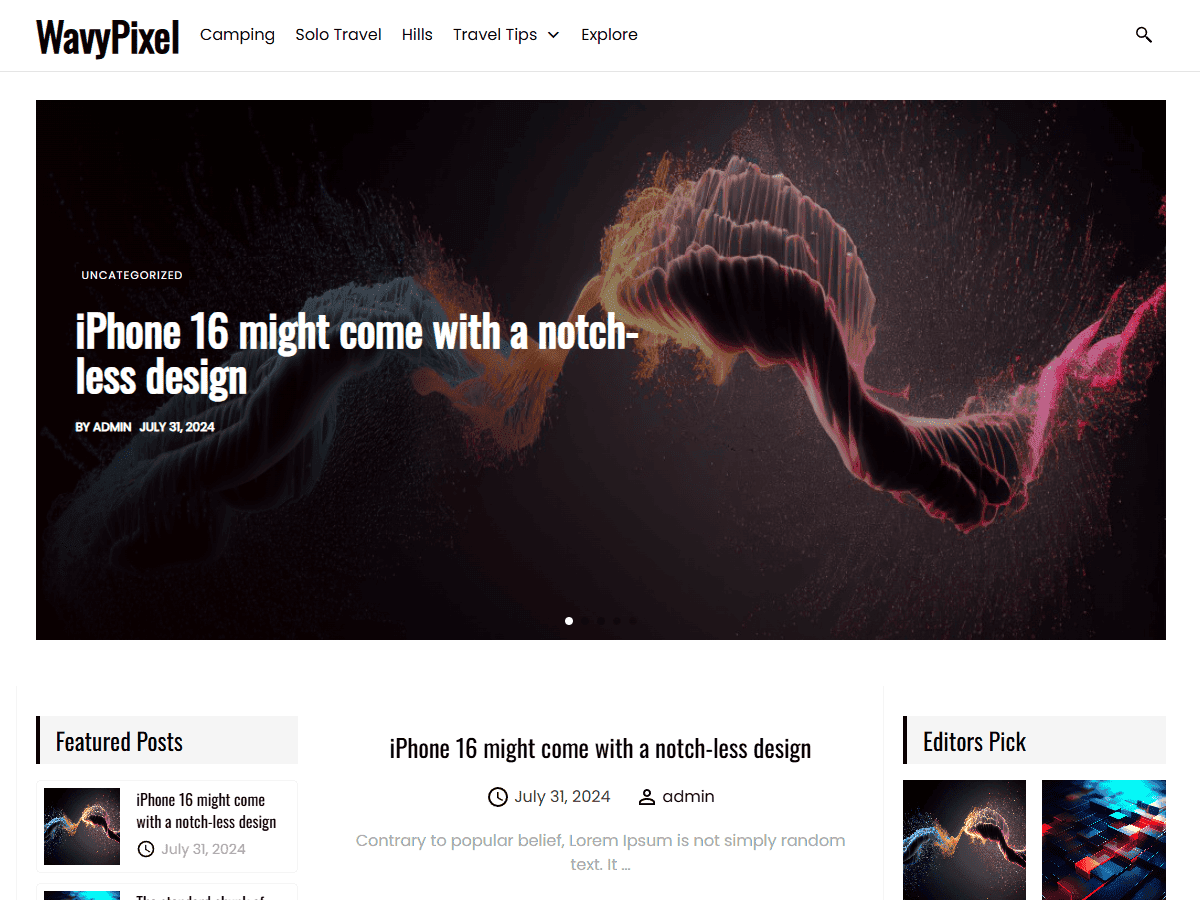Set up your amazing website with our highly flexible and adaptable wavypixel WordPress Theme. Leverage the power of WordPress and create a mind-blowing website utlizing features such as multiple post layouts, multiple headers, Elementor Page Builder support, Gutenberg Block Editor Support, Typography Options and much more. To get started you can even import demo content from our pre-made demo templates. In case you run into any issue with wavypixel, reach out to us at support@indithemes.com.
