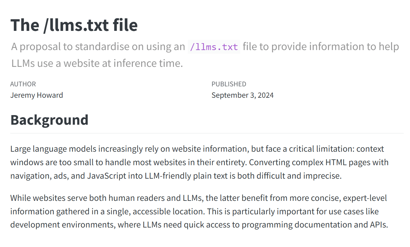 A screenshot from the proposed standard over on https://llmstxt.org/.